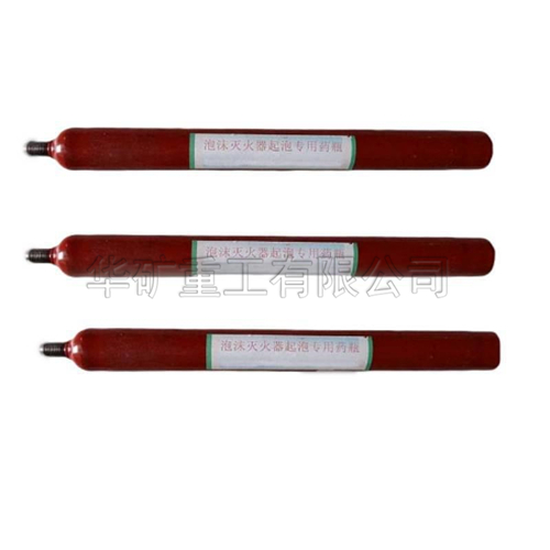 泡沫滅火器起泡專用藥瓶泡沫滅火器起泡專用藥瓶藥瓶材質:鋼瓶。長度80.裝兩種藥品,用來起泡。筒體顛倒過來,一只手緊握提環,另一只手扶住筒體的底圈,將射流對準燃燒物。在撲救可燃液體火災時,如已呈流淌狀燃